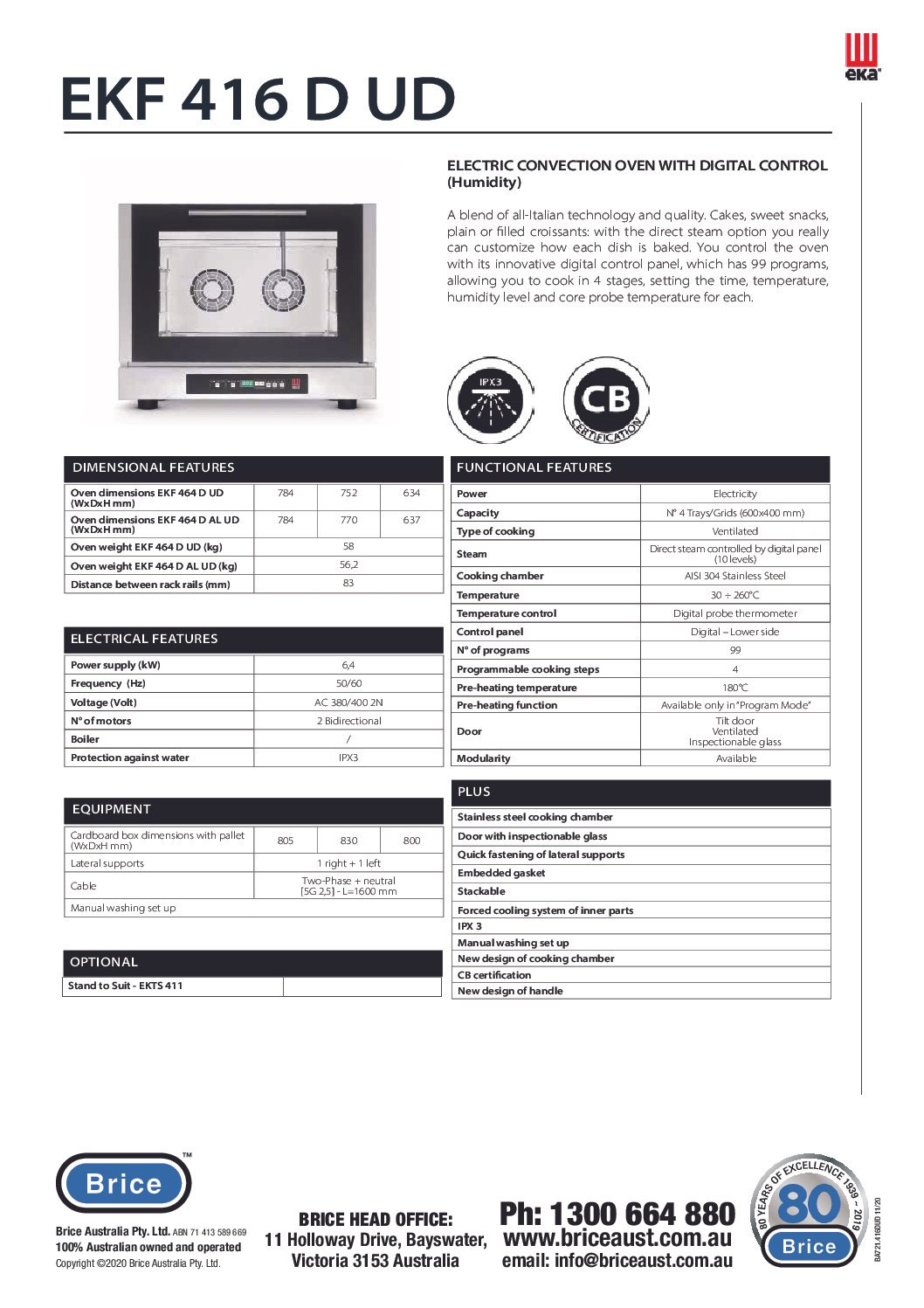 EKA 4 Trays Convection Oven (416 Line) EKF416DUD & EKF416DALUD features :