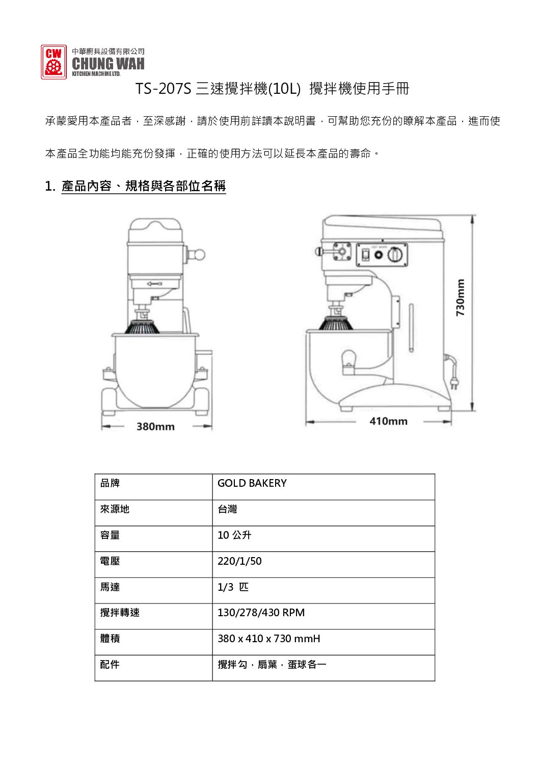 • 配備多種附件,包括攪拌勾、扇葉和蛋球