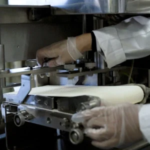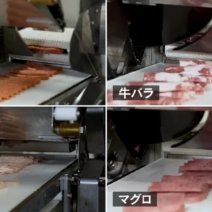 ● 仿形切割、切片後的商品與進料商品以相同的形狀排布在接收傳送帶上